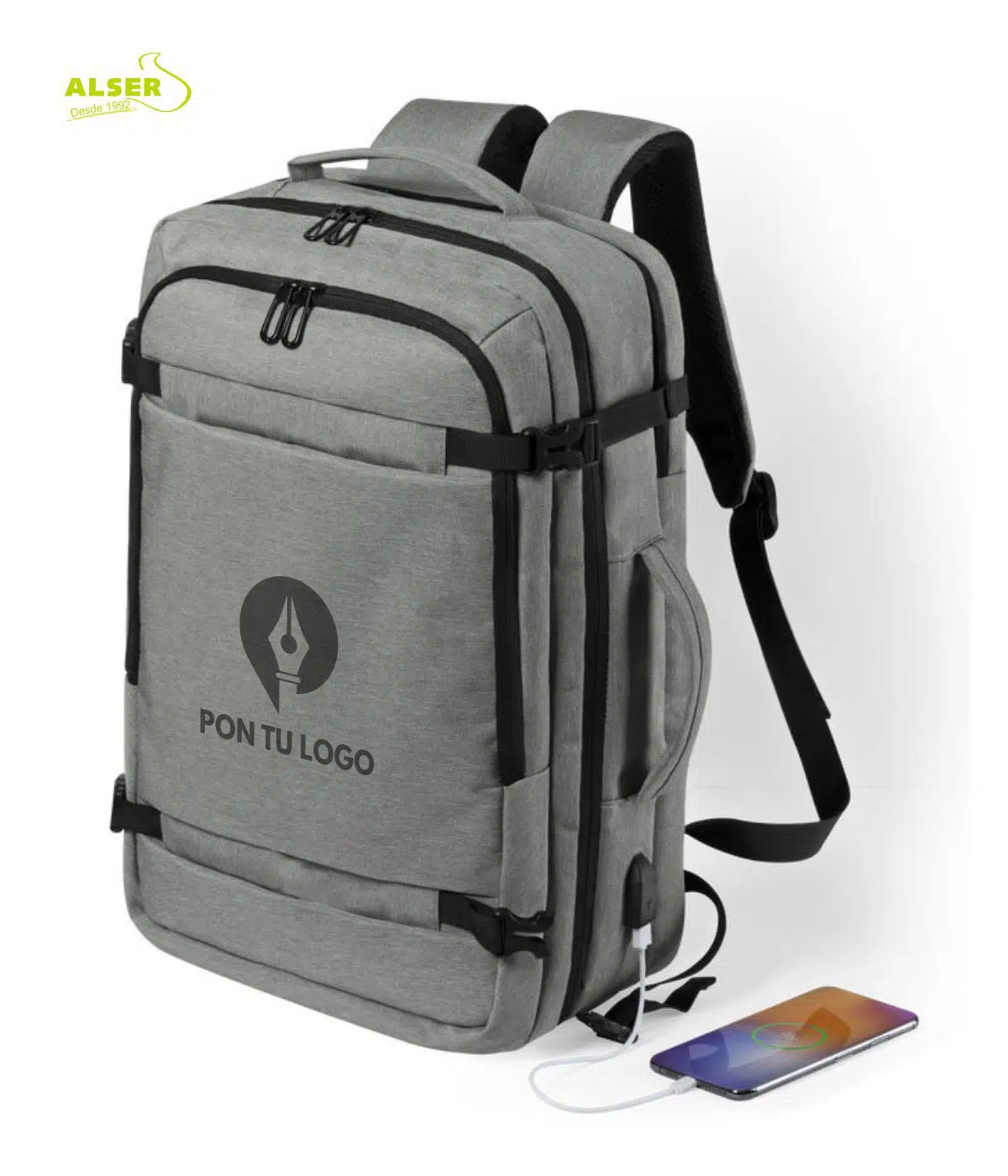 Mochila de trabajo personalizada con USB y compartimento laptop